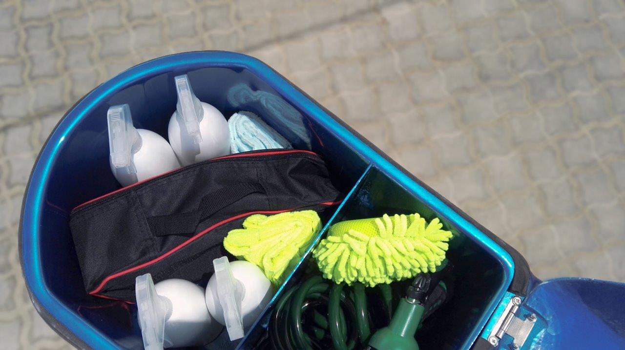 Our machines are completely mobile and fully functional to support all types of car wash needs. The machine has been designed to house a high pressure water pump and vacuum cleaner, with no need to connect to a water supply or electricity outlet.